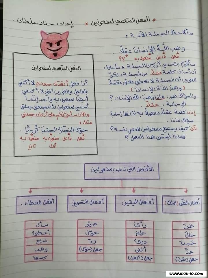 بالصور :. تدريبات الفعل المتعدي إلى مفعولين لمادة اللغة العربية الصف الثامن الفصل الاول