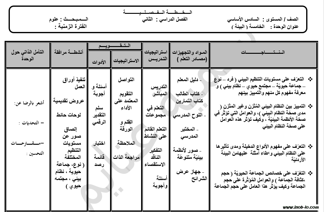 نموذج Word قابل للتعديل الخطة الفصلية + تحليل المحتوى لمادة العلوم Collins الصف السادس الفصل الثاني