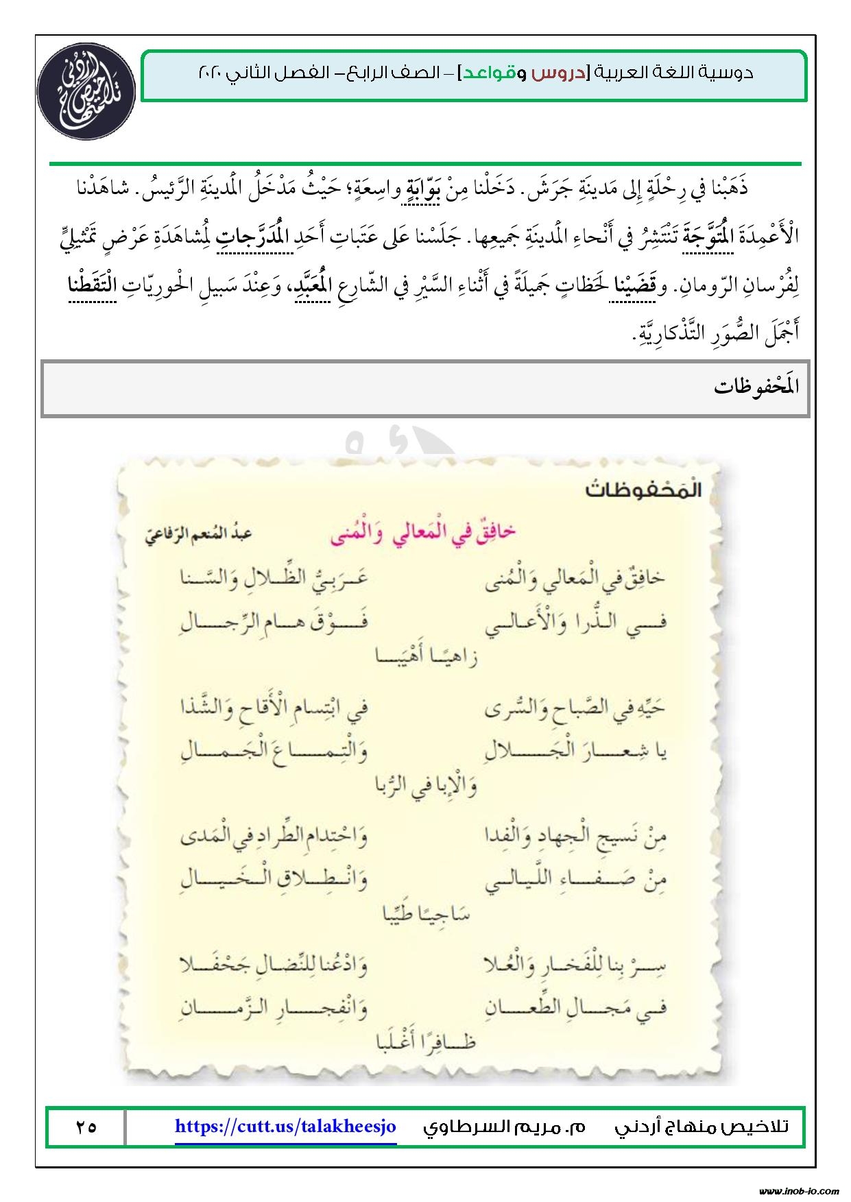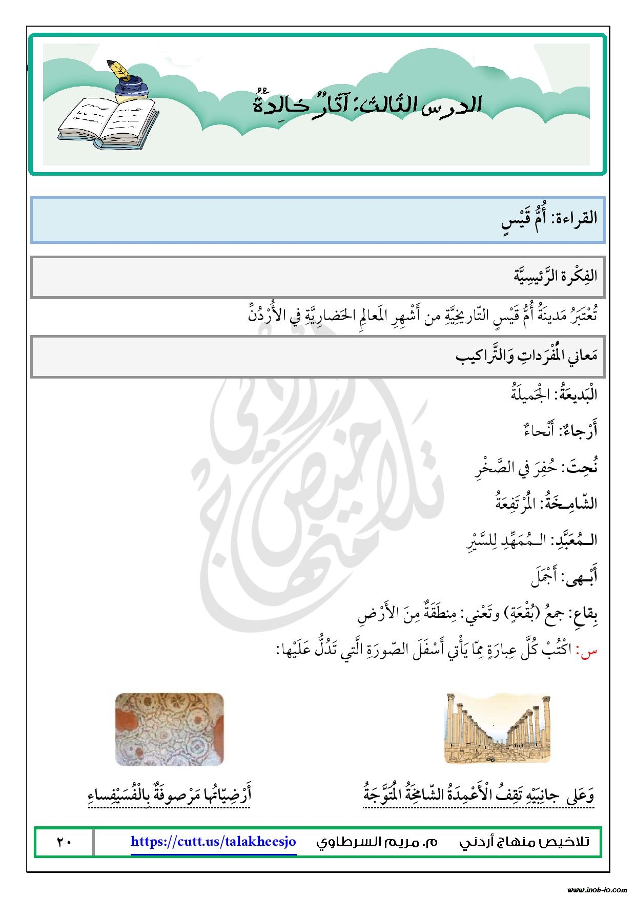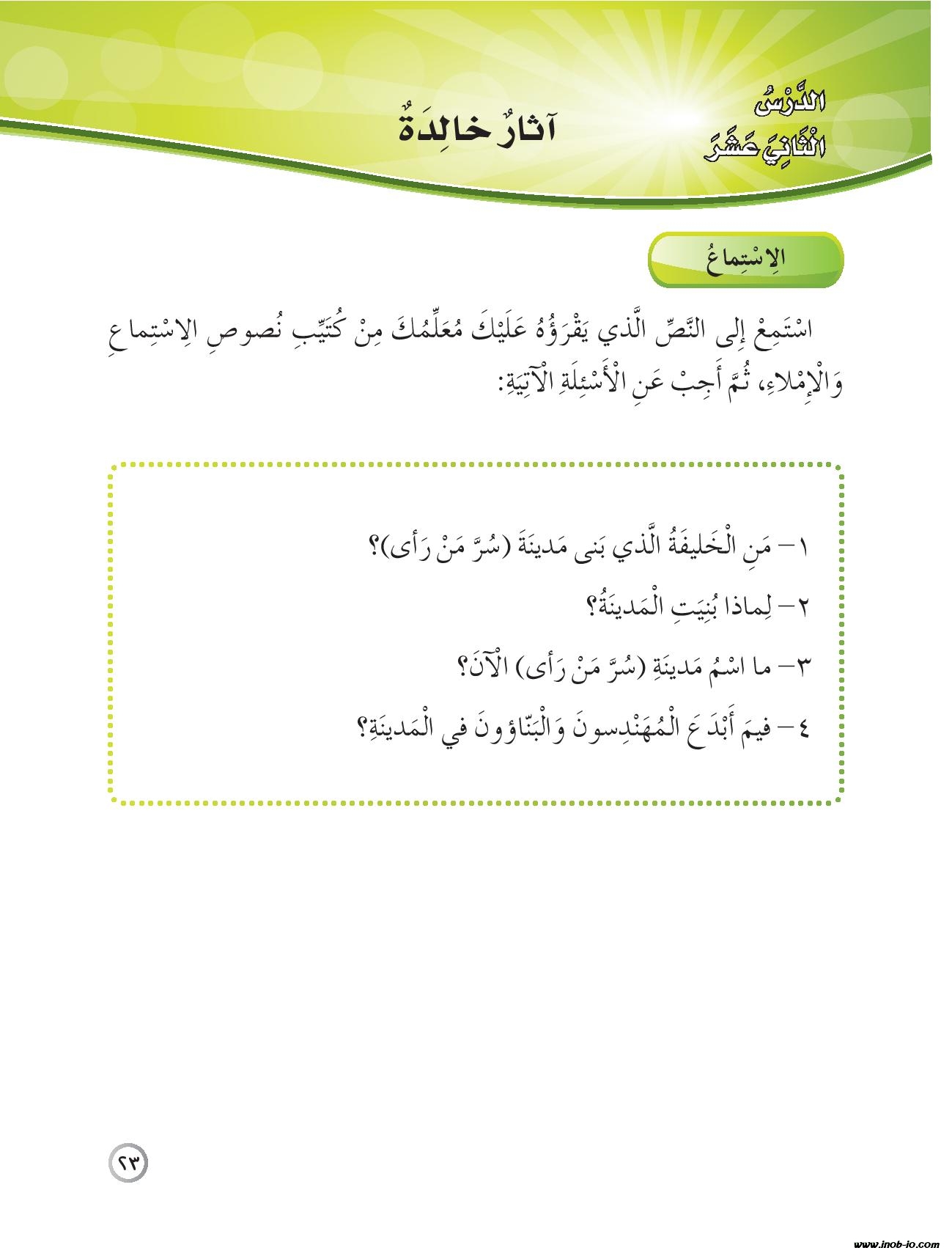 بالصور :. شرح وحلول و اجابات ومعاني وتراكيب درس آثار خالدة لمادة اللغة العربية الصف الرابع الفصل الثاني