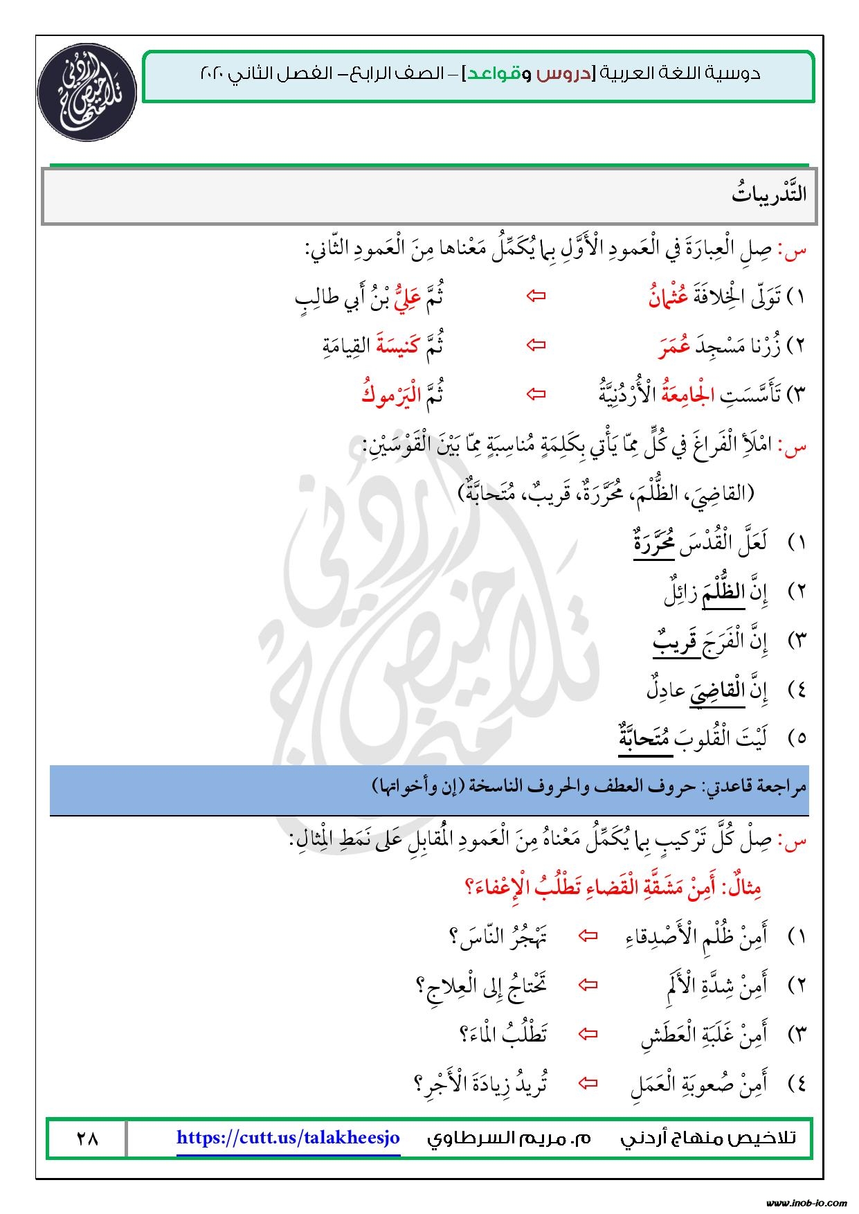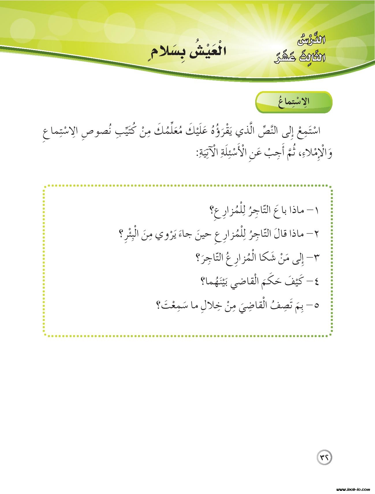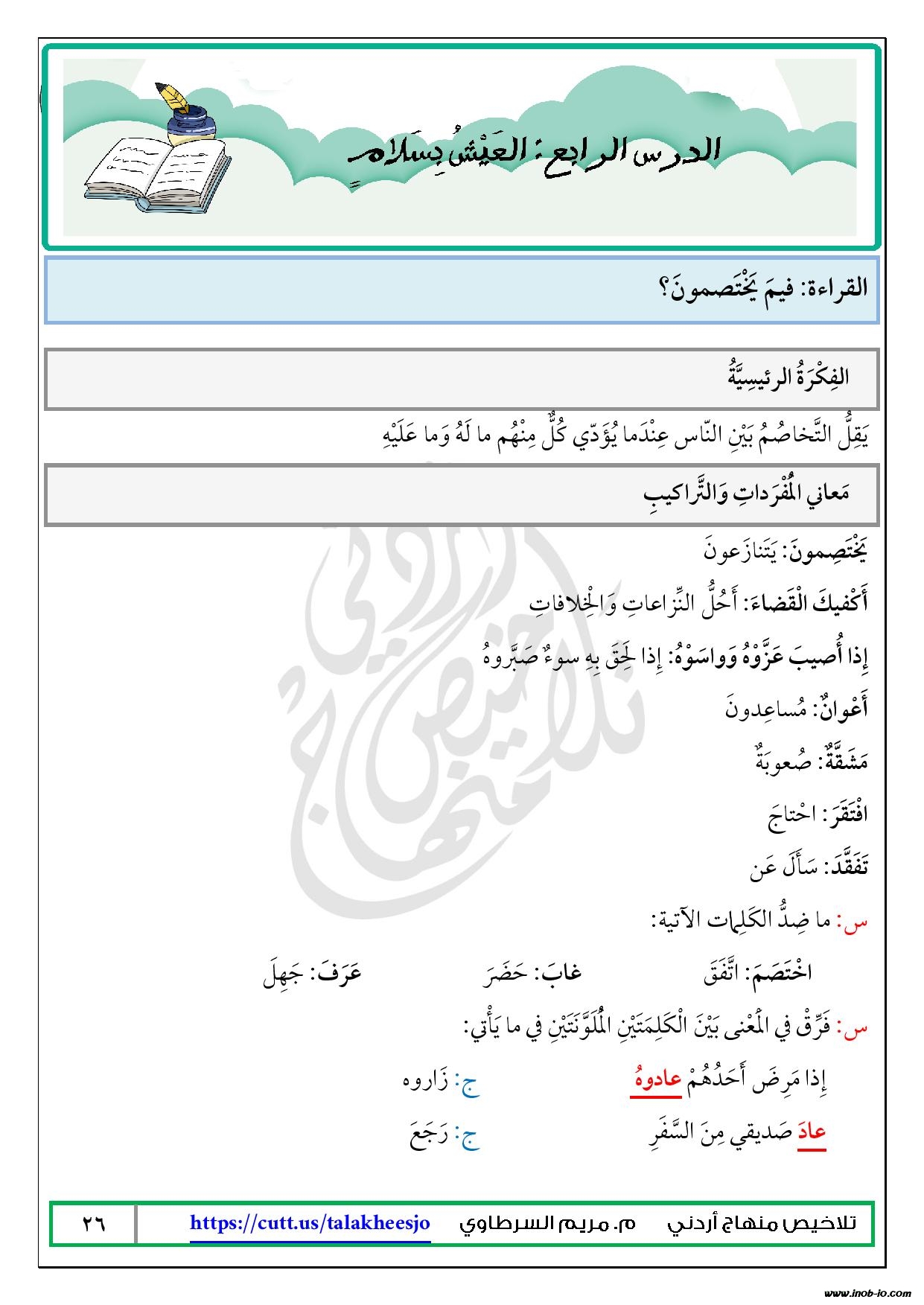 بالصور :. شرح وحلول و اجابات ومعاني وتراكيب درس العيش بسلام لمادة اللغة العربية الصف الرابع الفصل الثاني