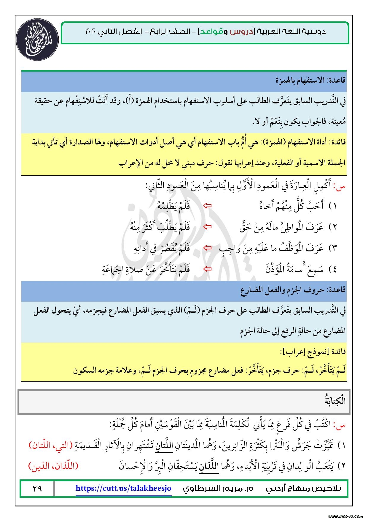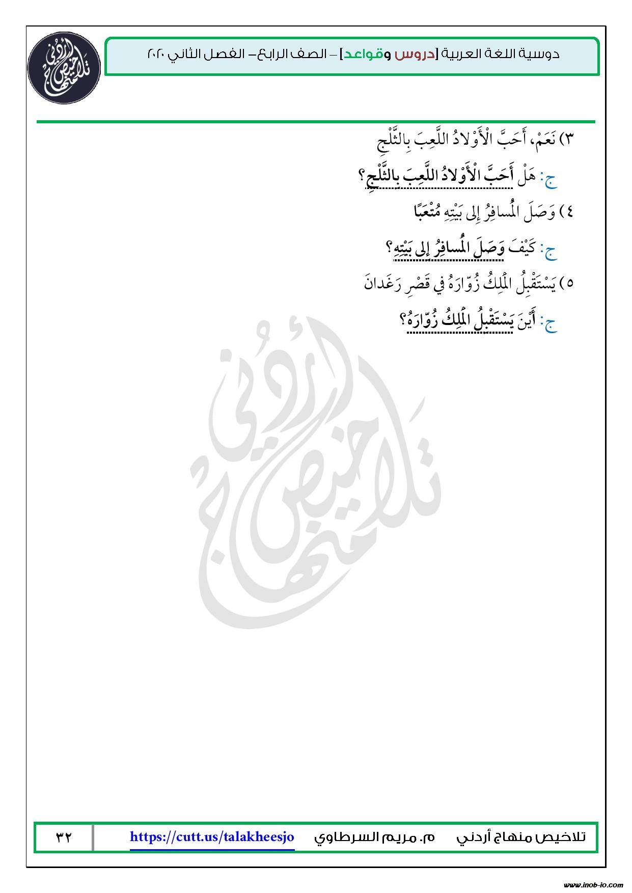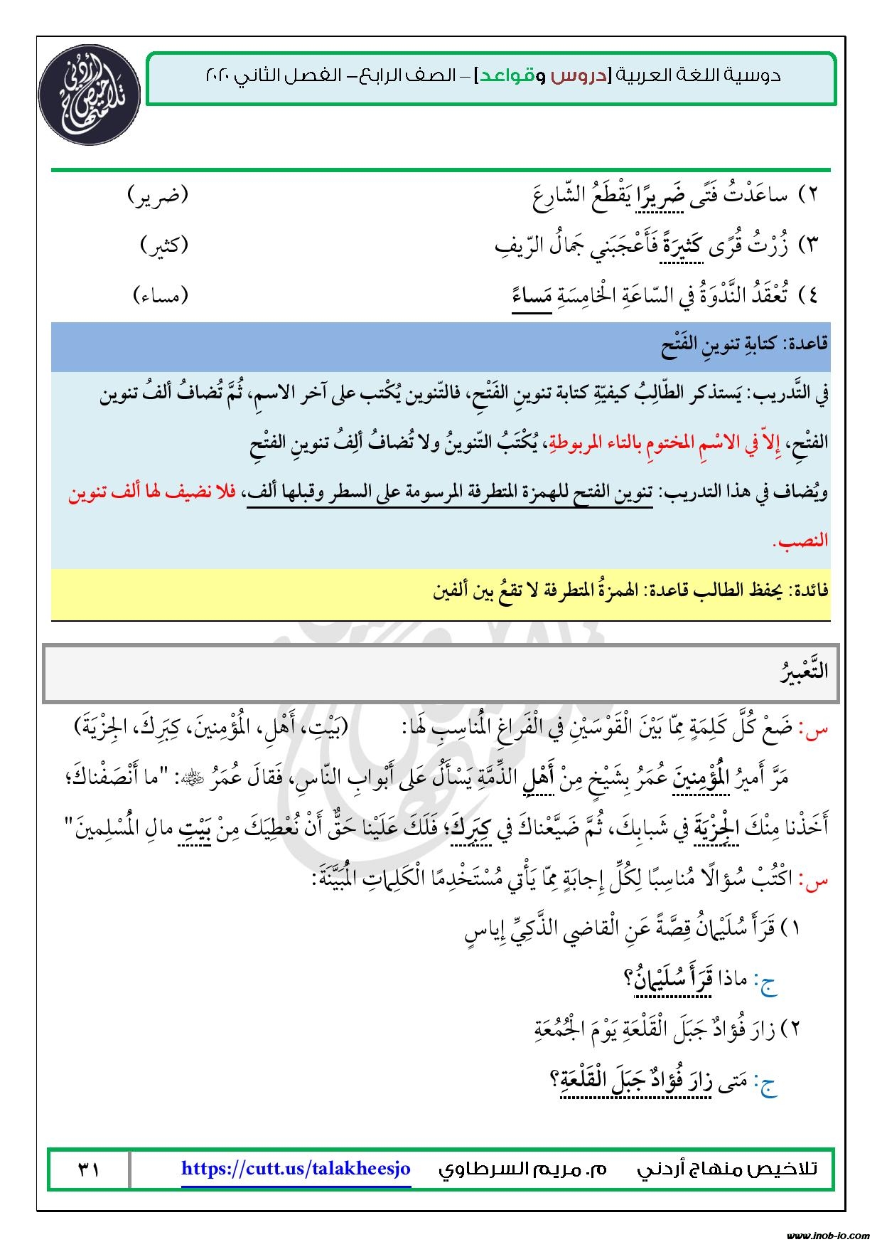 بالصور :. شرح وحلول و اجابات ومعاني وتراكيب درس العيش بسلام لمادة اللغة العربية الصف الرابع الفصل الثاني