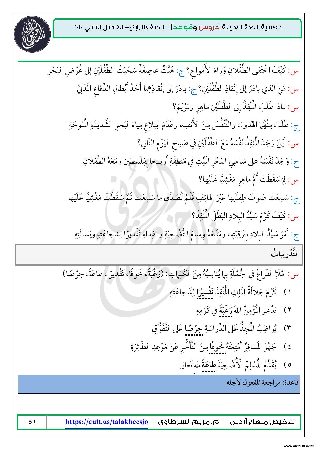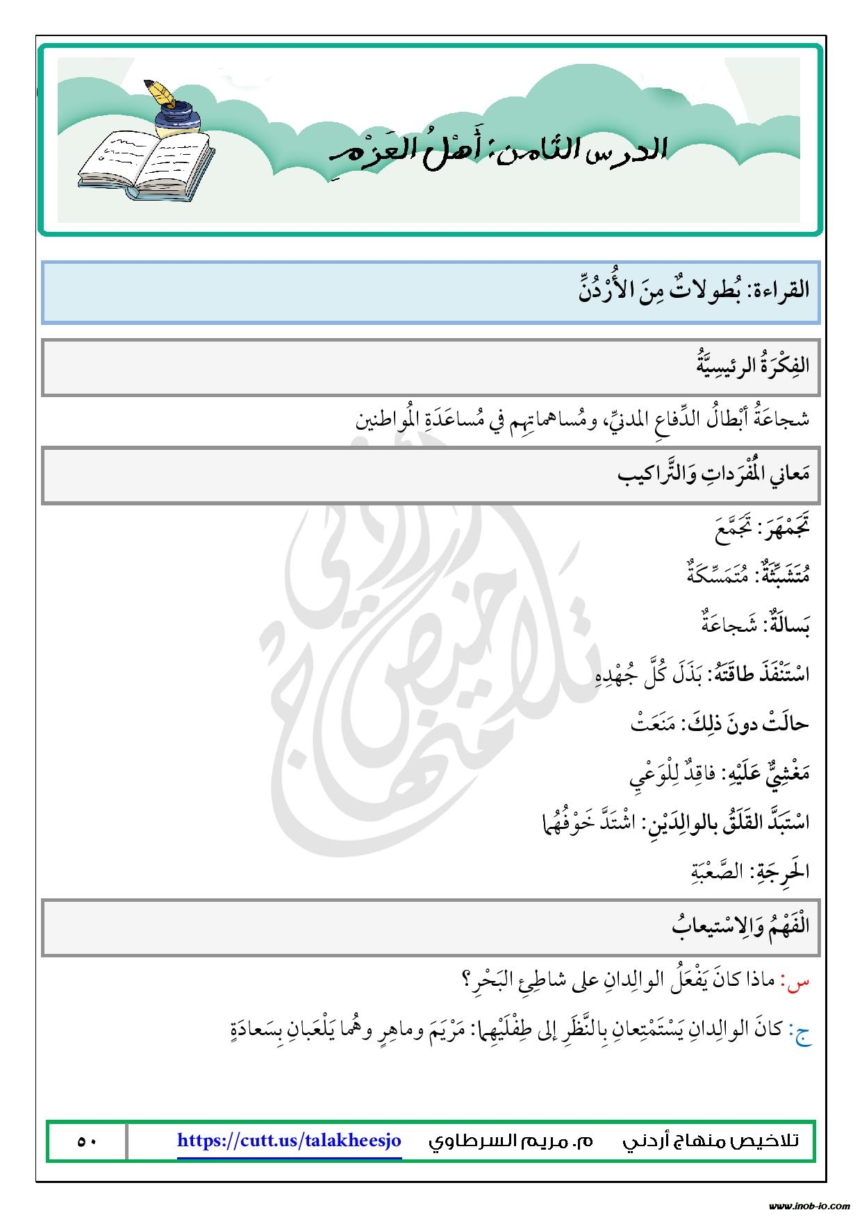 بالصور :. شرح وحلول و اجابات ومعاني وتراكيب درس اهل العزم لمادة اللغة العربية الصف الرابع الفصل الثاني