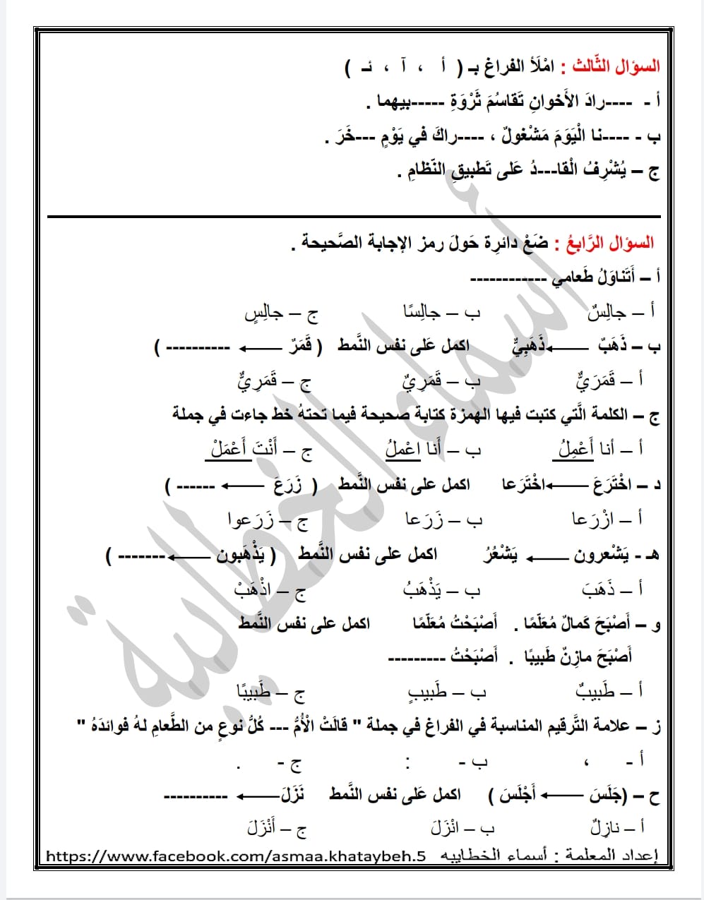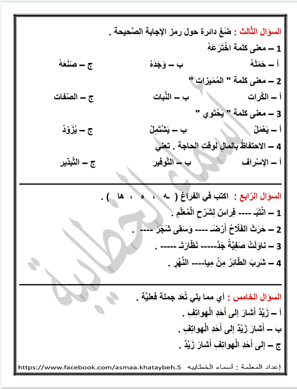 بالصور نموذج عدد -2- امتحان الشهر الثاني لمادة اللغة العربية الصف الثالث الفصل الثاني