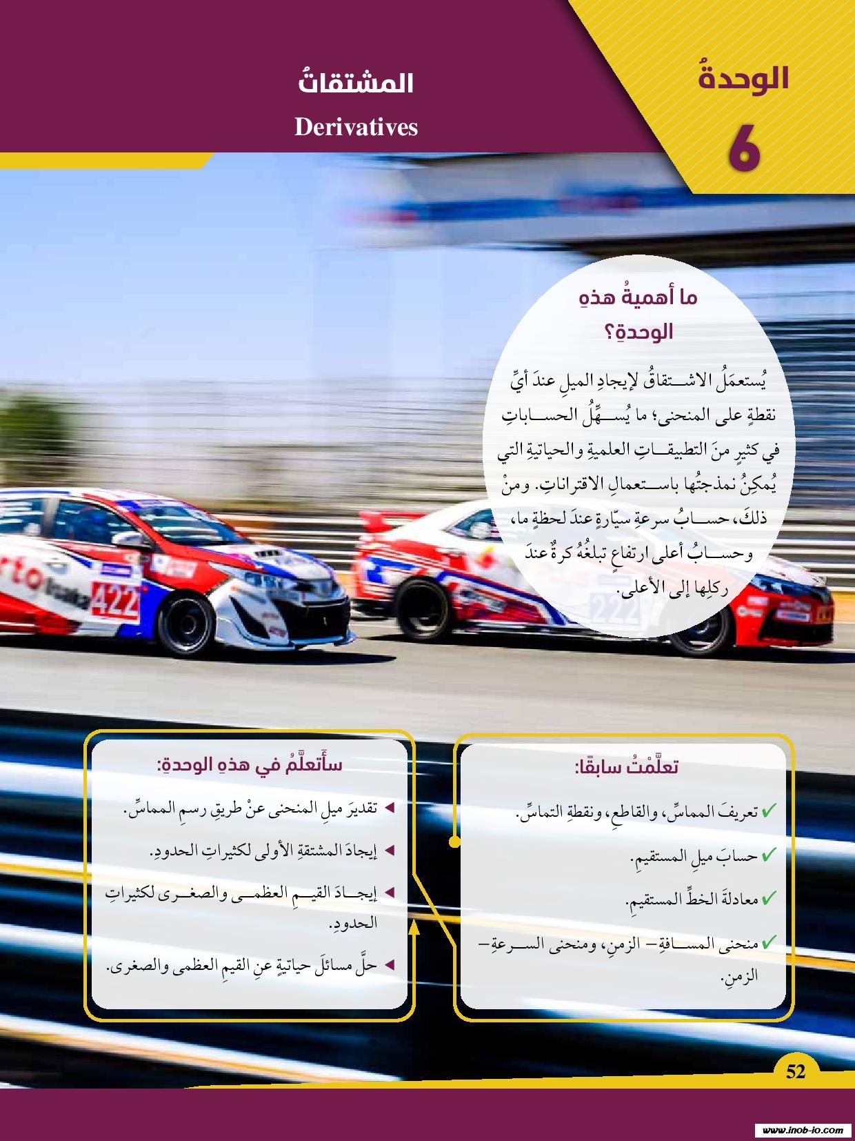 جميع اجابات كتاب الطالب للوحدة السادسة المشتقات لمادة الرياضيات الصف العاشر الفصل الثاني