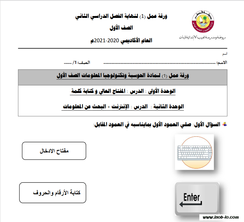 ورقة عمل + اختبار لمادة الحوسبة وتكنلوجيا المعلومات الفصل الثاني المنهاج القطري