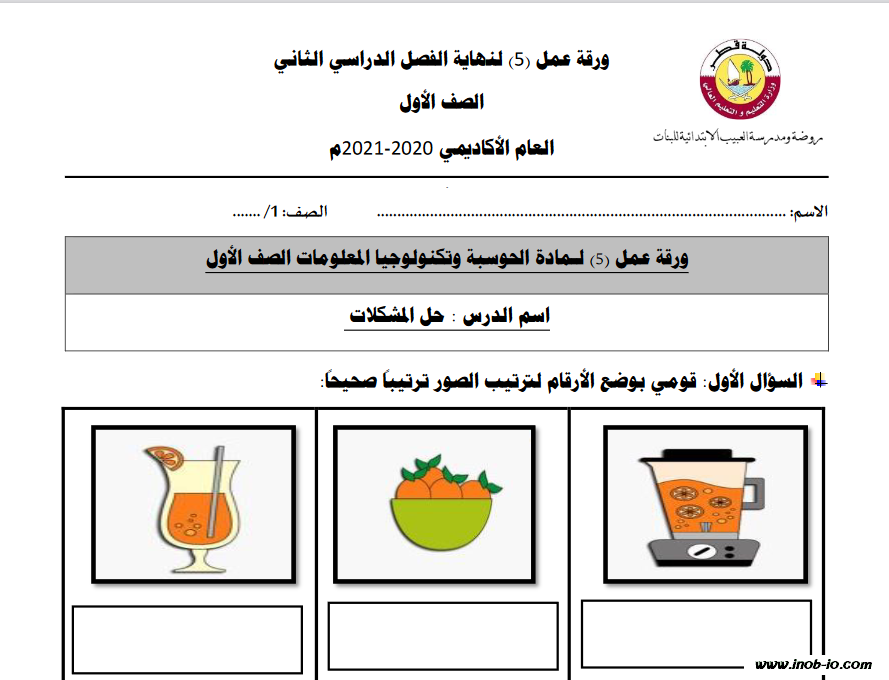 ورقة عمل 5 لمادة الحوسبة وتكنلوجيا المعلومات الفصل الثاني المنهاج القطري