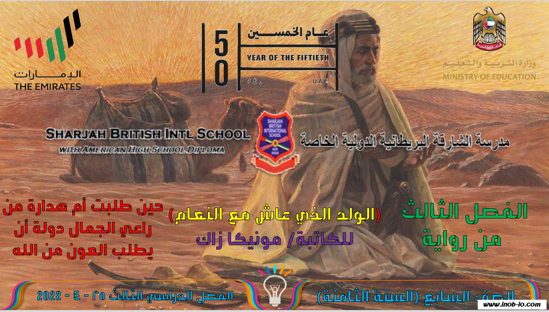 حلول درس رواية الولد الذي عاش مع النعام لمادة اللغة العربية الصف السابع الفصل الثالث