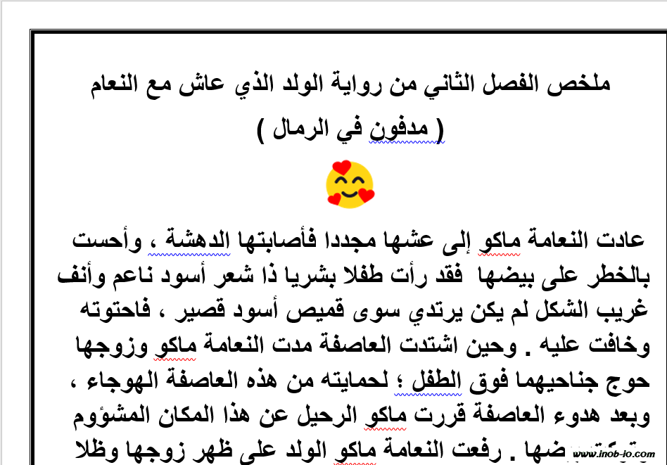 نموذج Word قابل للتعديل ملخص رواية الولد الذي عاش مع النعام الفصل الثاني مدفون في الرمال لمادة اللغة العربية الصف السابع الفصل الثالث