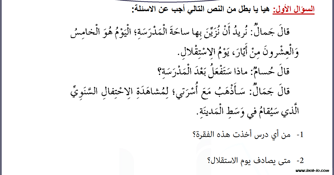 نموذج - 2 - الاختبار النهائي لمادة اللغة العربية الصف الثاني الفصل الثاني