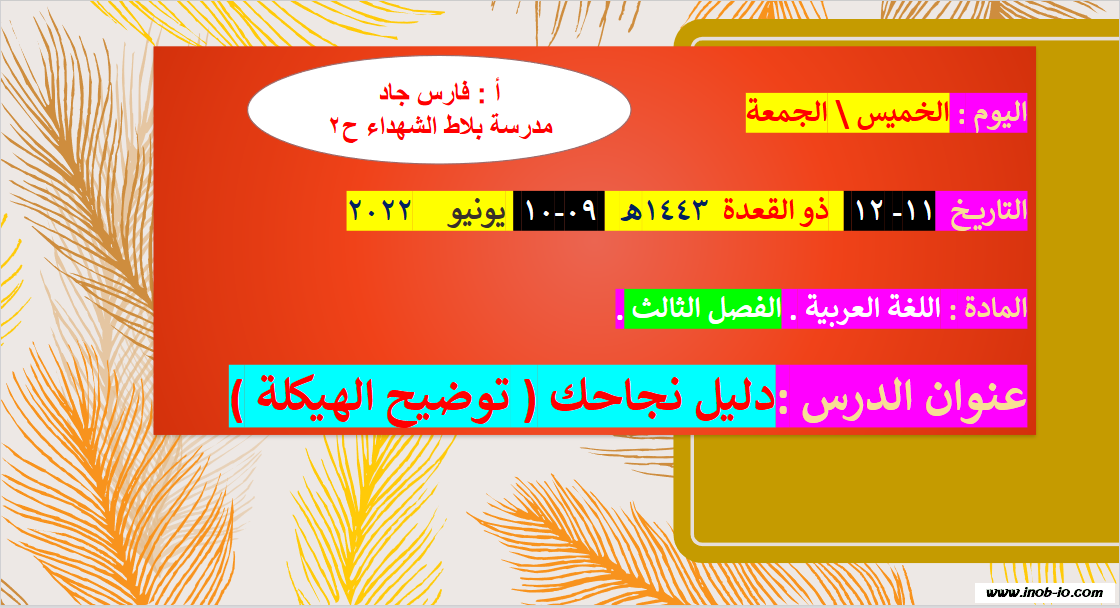 أسئلة هيكل امتحان لمادة اللغة العربية الصف الخامس الفصل الثالث