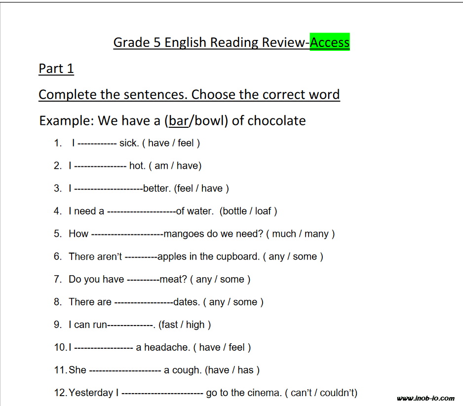 مراجعة Reading Review لمادة اللغة الإنجليزية الصف الخامس الفصل الثالث