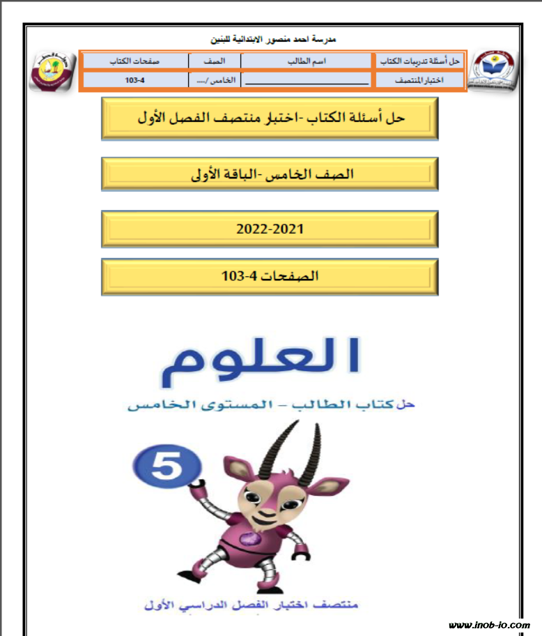 حلول تدريبات الكتاب من صفحة 4-103 لمادة العلوم الصف الخامس الفصل الاول