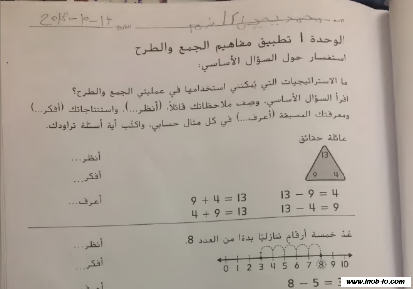 كتاب النشاط الوحدة الأولى مع الحل لمادة الرياضيات المتكاملة الصف الثاني الفصل الاول