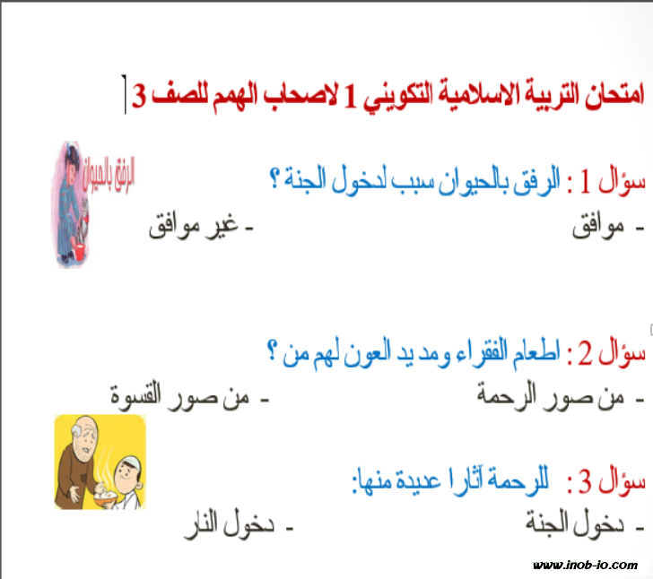نموذج اختبار أصحاب الهمم لمادة التربية الاسلامية الصف الثالث الفصل الاول