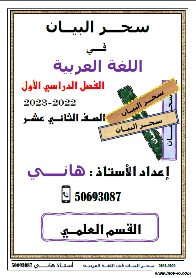 سحر البيان في اللغة العربية المستوى الثاني عشر الفصل الاول 2023