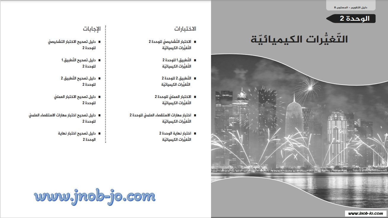 PDF دليل التقويم للوحدة الثانية التغيرات الكيميائية كتاب التمارين الصف الثامن الفصل الاول