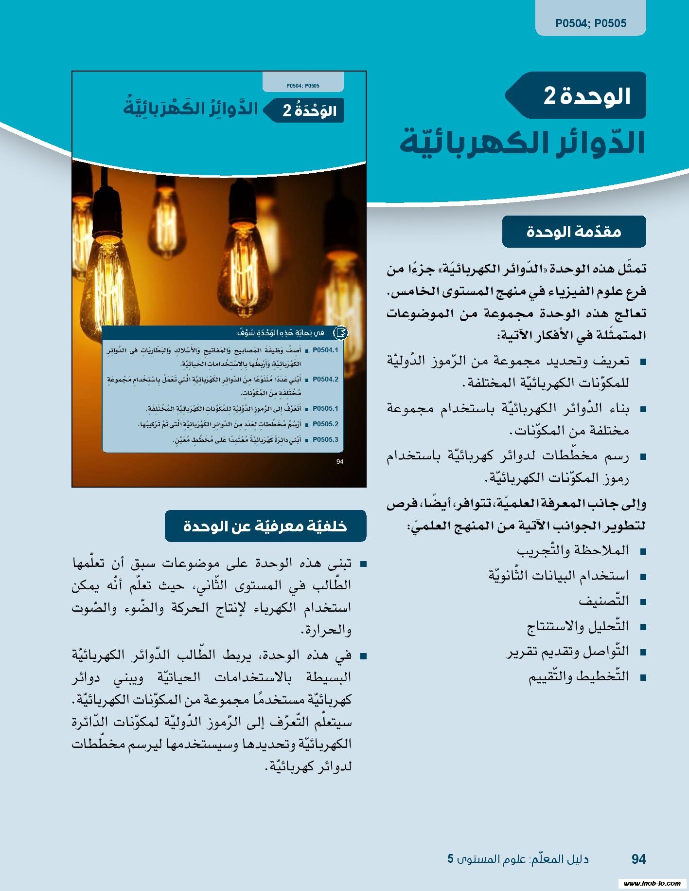 دليل المعلم الوحدة الثانية الدوائر الكهربائية لمادة العلوم الصف الخامس الفصل الاول المنهاج القطري نسخة 1444-2023