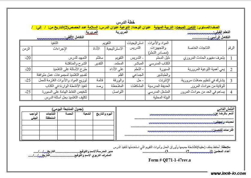 نموذج Word قابل للتعديل دفتر التحضير لمادة التربية المهنية الصف الثامن الفصل الاول 2023