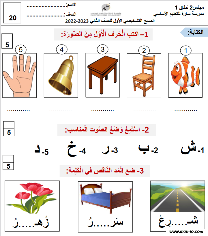 نموذج اختبار نموذج المسح التشخيصي لمادة اللغة العربية الصف الثاني الفصل الاول