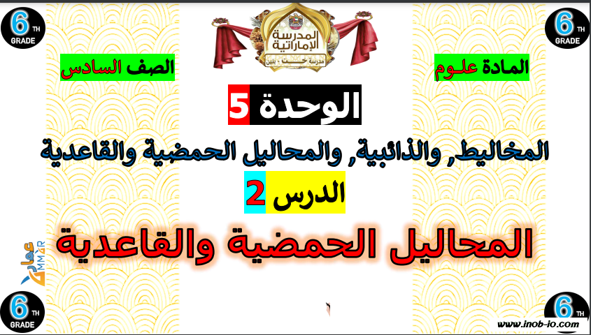 تلخيص شامل المحاليل الحمضية والقاعدية لمادة العلوم المتكاملة الصف السادس الفصل الاول