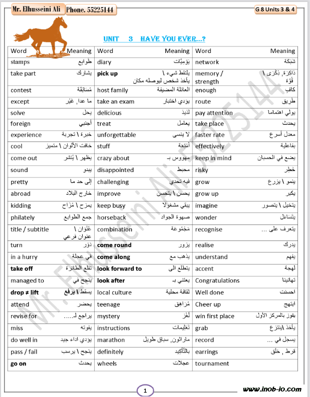 الوحدتين 3و 4 شرح وتلخيص لمادة اللغة الانجليزية الصف الثامن الفصل الاول المنهاج القطري