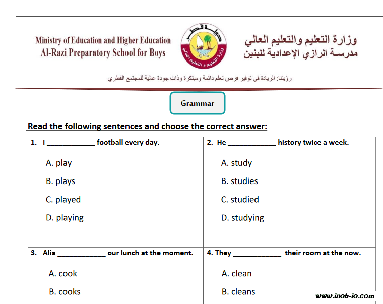 مراجعة قواعد لمادة اللغة الانجليزية الصف الثامن الفصل الاول المنهاج القطري