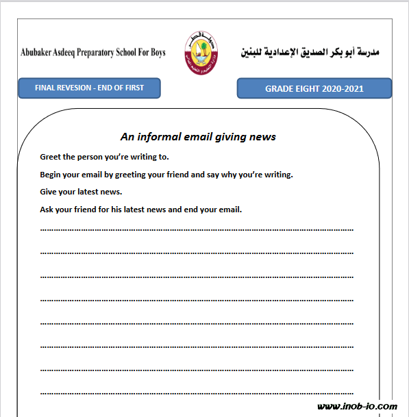 مراجعة كتابة لمادة اللغة الانجليزية الصف الثامن الفصل الاول المنهاج القطري