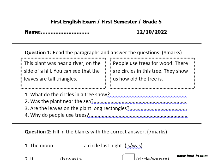 نموذج رقم -1- Word قابل للتعديل اختبار الشهر الأول لمادة اللغة الانجليزية للصف الخامس الفصل الأول