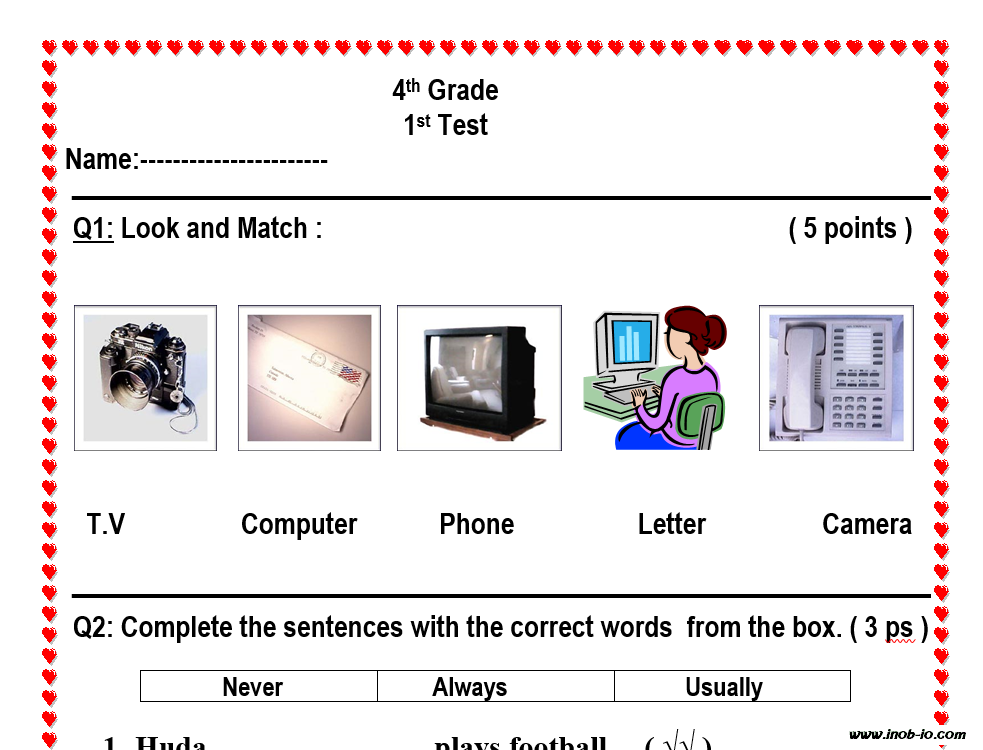 Word نموذج رقم -4- word قابل للتعديل اختبار الشهر الأول لمادة اللغة الانجليزية للصف الرابع الفصل الأول