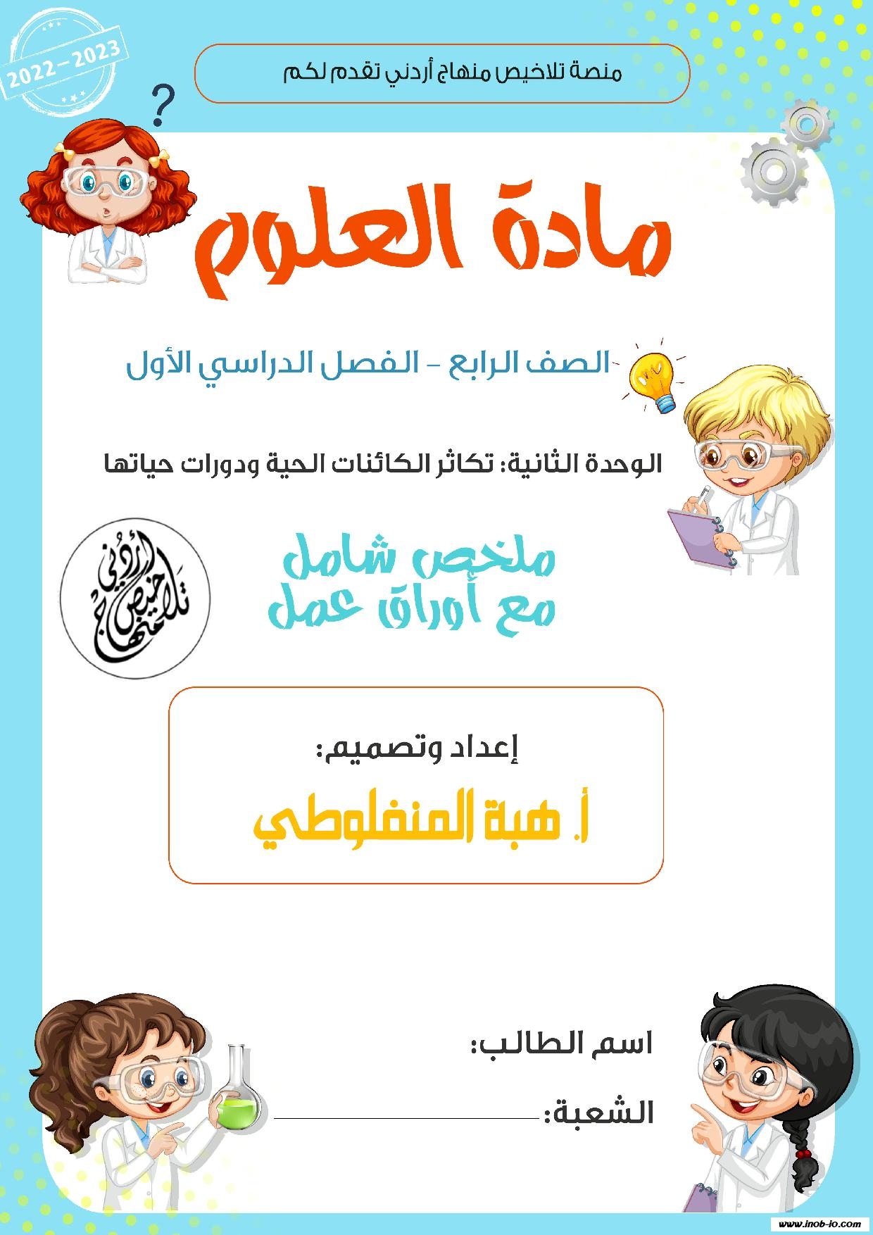 ملخص شامل + أوراق عمل لوحدة تكاثر الكائنات الحية ودورات حياتها لمادة العلوم Collins الصف الرابع الفصل الاول