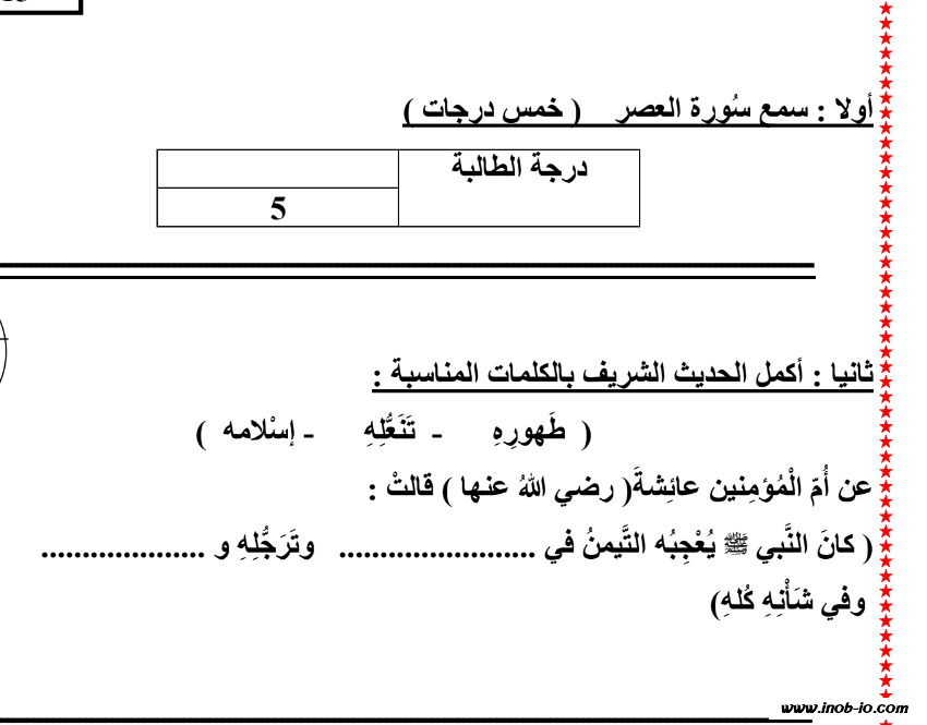 اختبار ( 2 ) منتصف الفصل الاول لماده التربية إسلامية المستوى الثاني