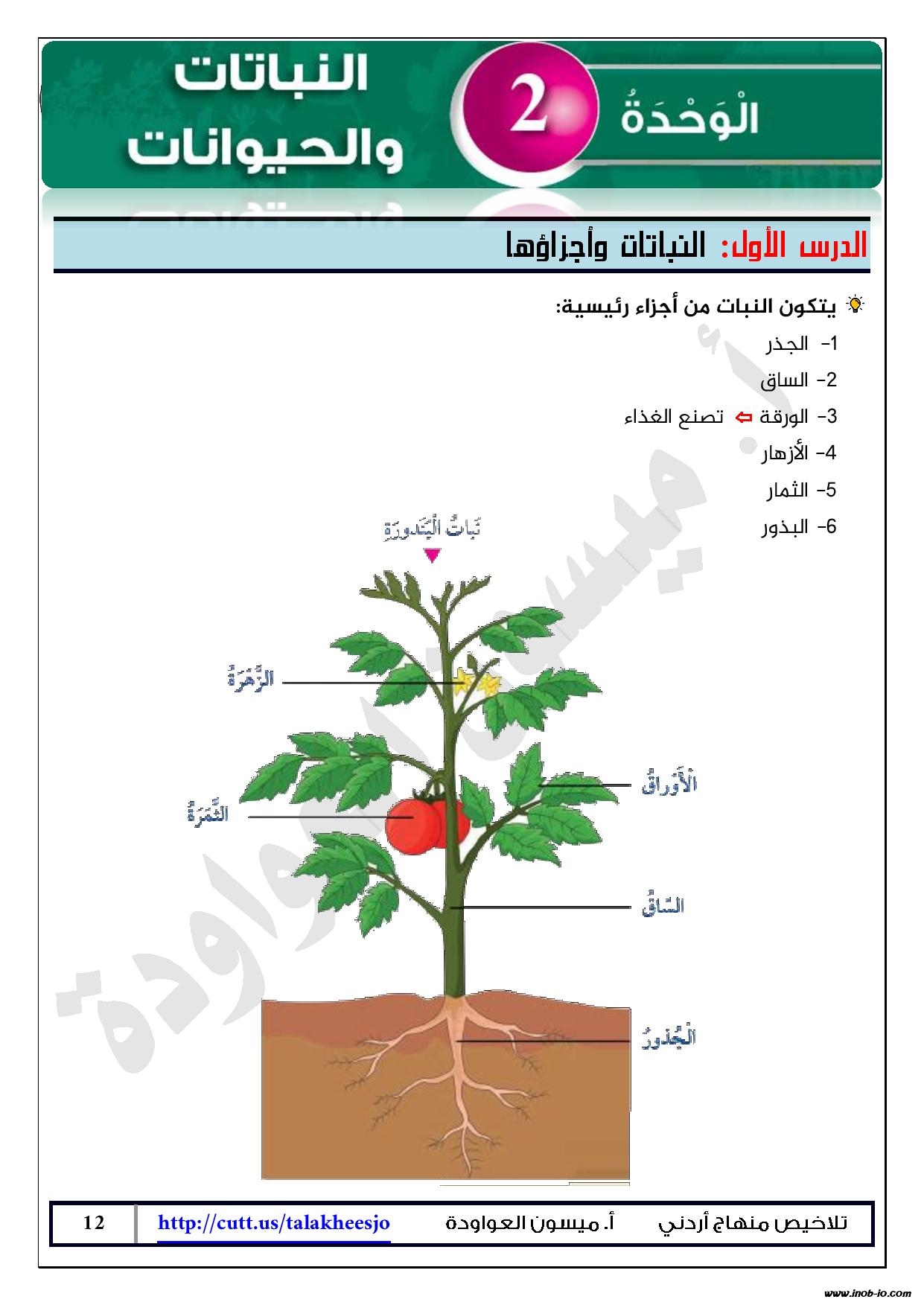 لوحدة النباتات والحيوانات لمادة العلوم الصف الاول الفصل الاول