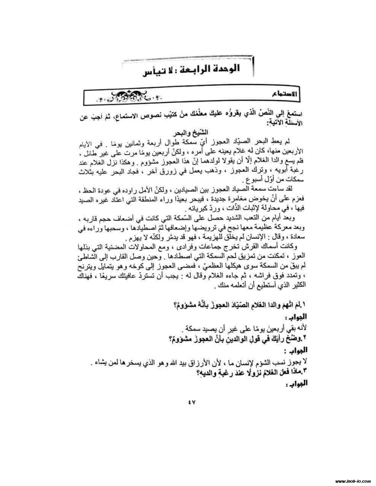 تلخيص وشرح لوحدة لا تيأس لمادة اللغة العربية الصف الثامن الفصل الاول