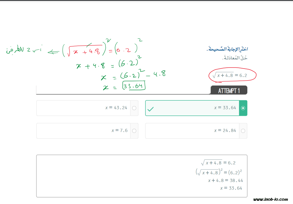 حلول درس المعادلات الجذرية لمادة الرياضيات المتكاملة الصف العاشر الفصل الاول