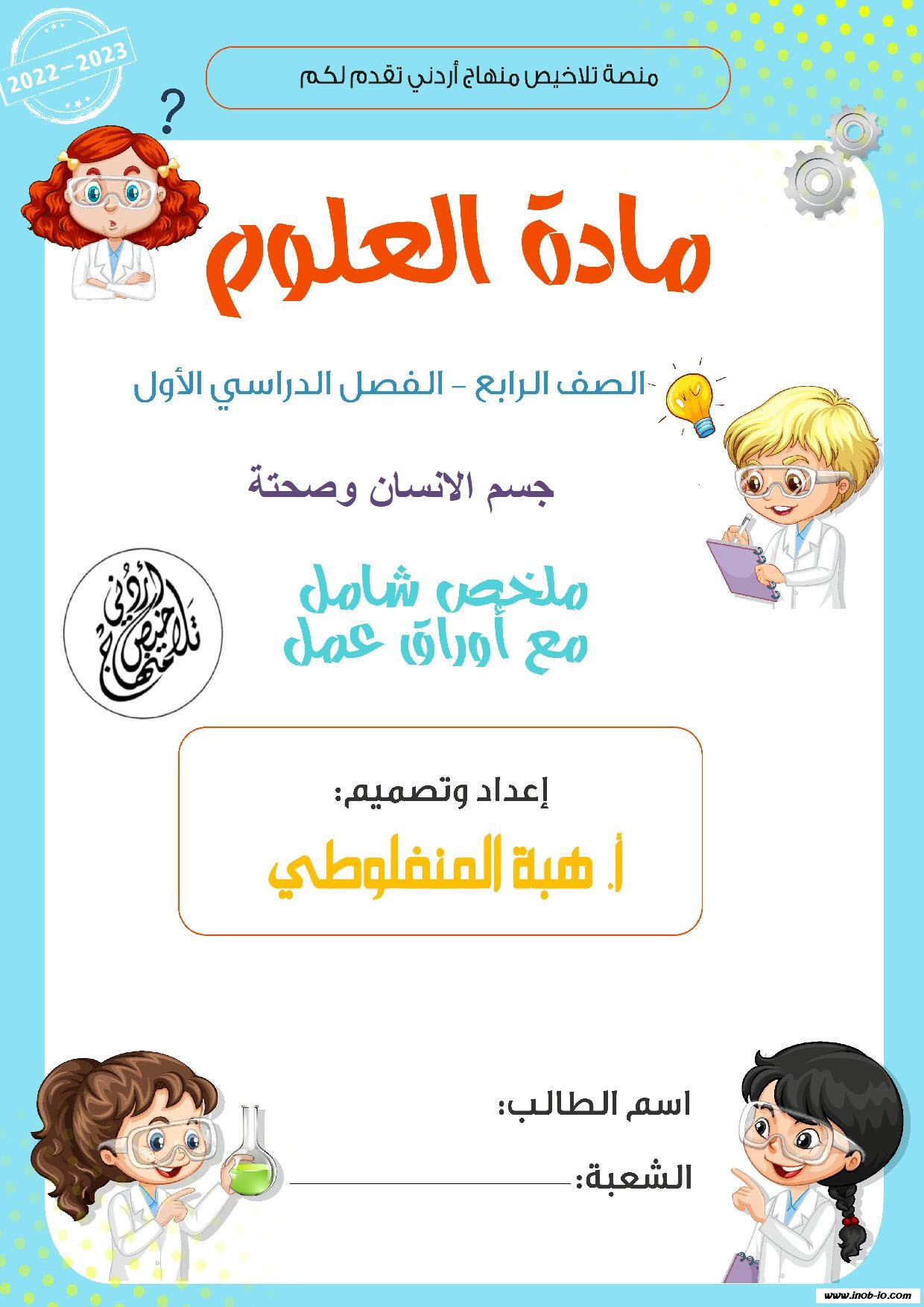 ملخص شامل + أوراق عمل لوحدة جسم الأنسان وصحته لمادة العلوم Collins الصف الرابع الفصل الاول
