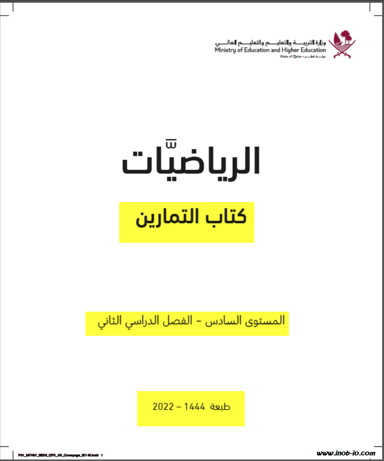 كتاب التمارين لمادة الرياضيات الصف السادس الفصل الثاني المنهاج القطري نسخة 1444-2022