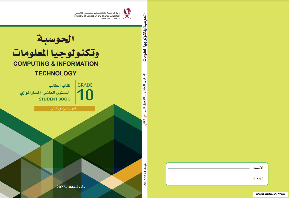 ملف PDF كتاب الطالب لمادة الحوسبة وتكنولوجيا المعلومات المسار الموازي الصف العاشر الفصل الثاني المنهاج القطري نسخة 1444-2022