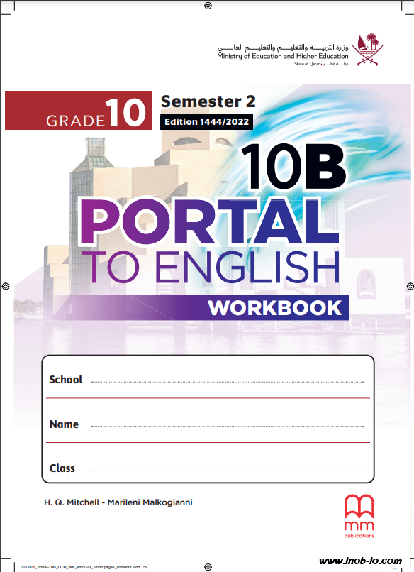 كتاب الطالب لمادة اللغة الإنجليزية PORTAL TO-Workbook للصف العاشر الفصل الثاني المنهاج القطري نسخة 1444-2022