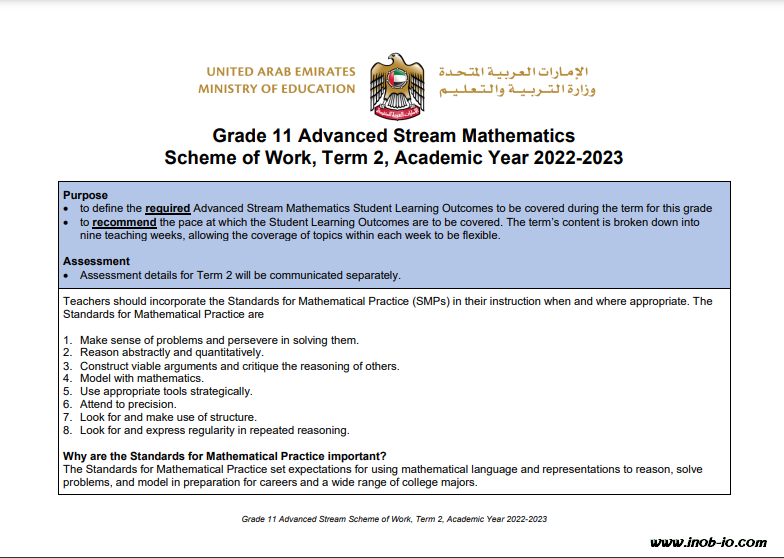 الخطة الفصلية لمادة الرياضيات المتكاملة Grade 11 Advanced Stream Mathematics الفصل الثاني