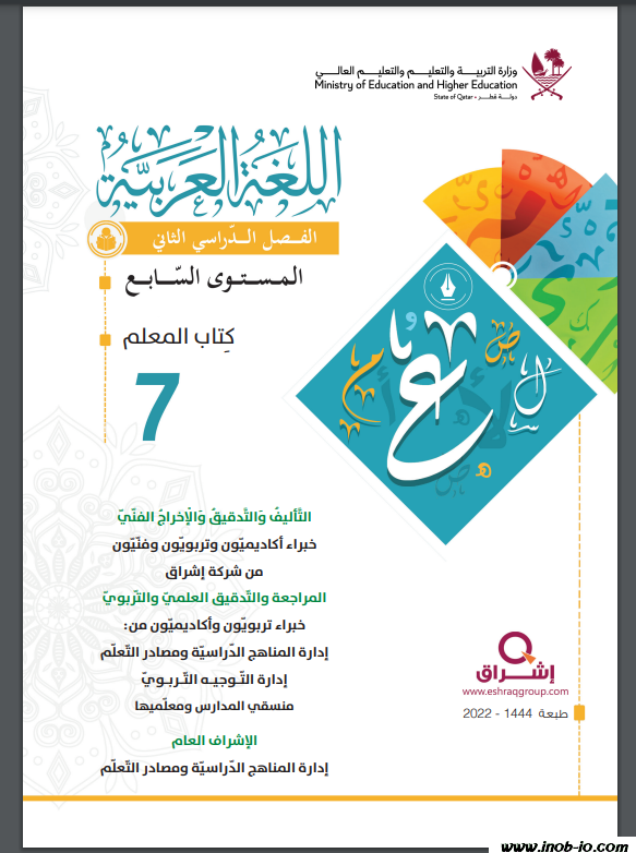 دليل المعلم :. لمادة اللغة العربية الصف السابع الفصل الثاني المنهاج القطري نسخة 1444-2022