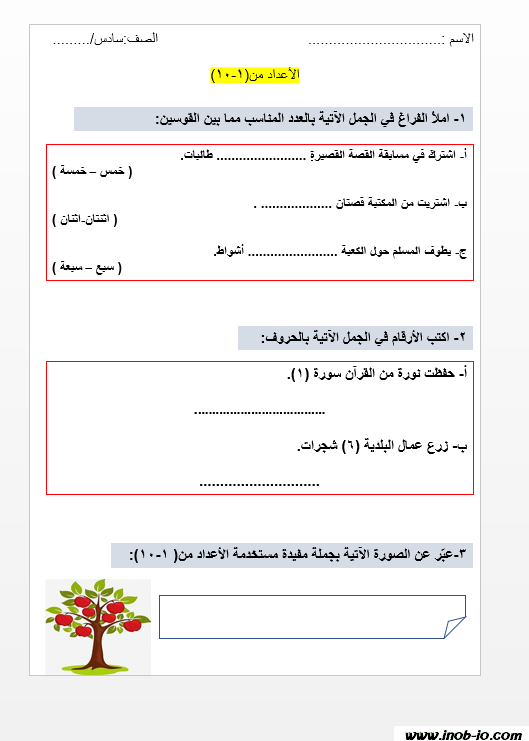 بوربوينت بوربوينت نموذج 2 ورقة عمل الاعداد من 1-10لمادة اللغة العربية الصف السادس الفصل الثاني المنهاج القطري