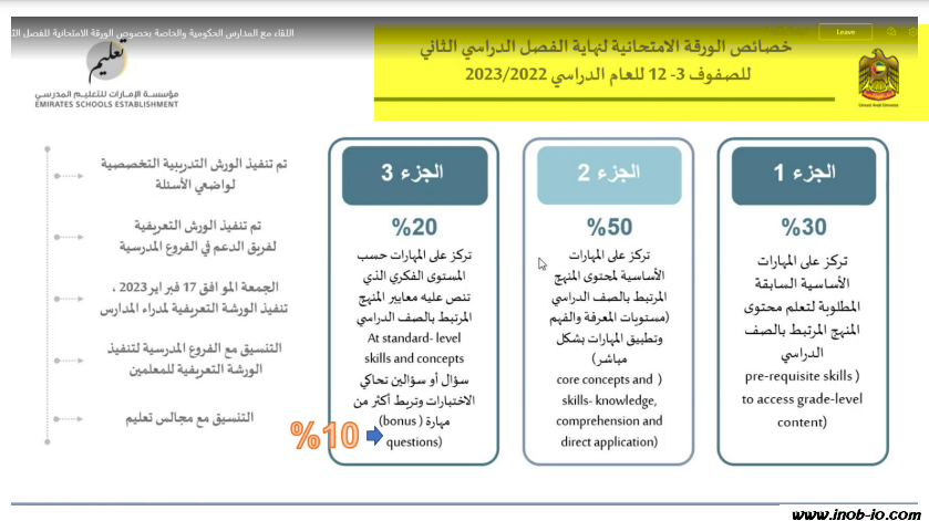 خصائص الورقة الامتحانية لنهاية الفصل الدراسي الثاني للصفوف من 3-12 العام الدراسي 2022-2023