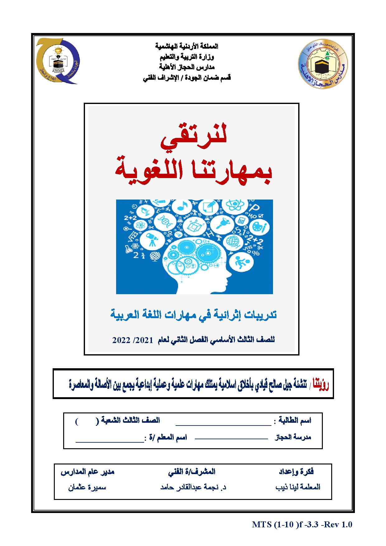 دوسية اوراق عمل ومعاني وشرح الدروس لمادة اللغة العربية الصف الثالث الفصل الثاني