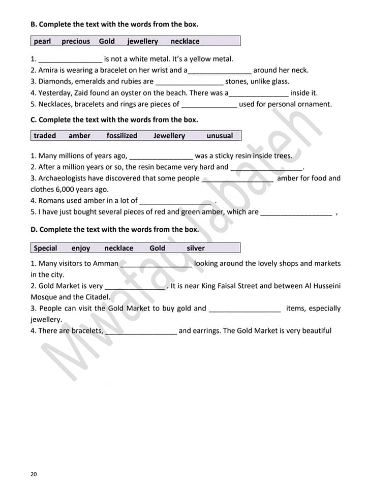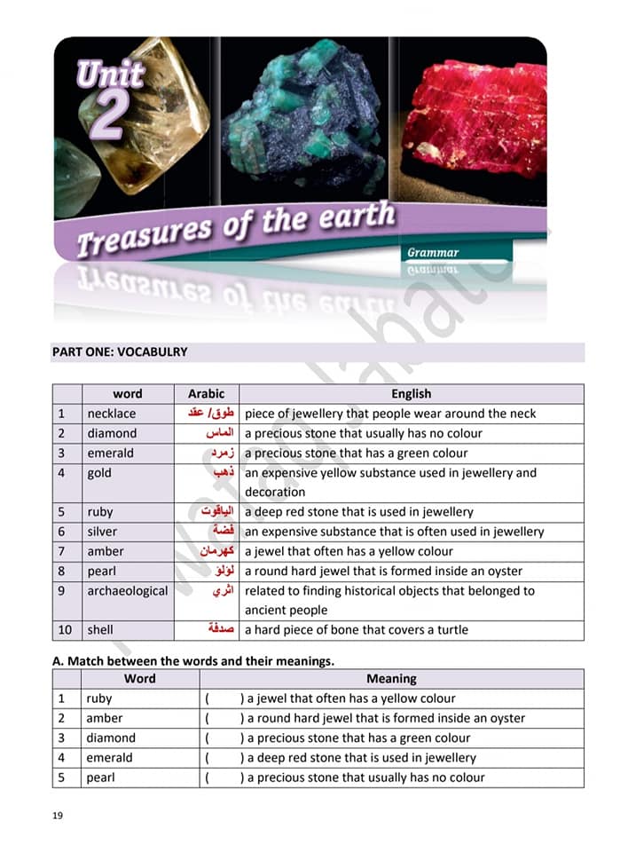 شرح أوراق عمل الوحدة الثانية Treasures of the Earth لمادة اللغة الانجليزية Action Pack Activity book الصف العاشر الفصل الثاني