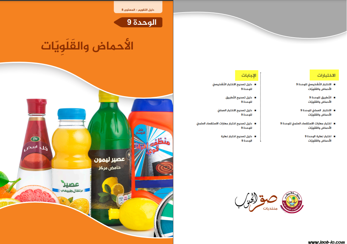 اختبارات مع الاجابات الاحماض والقلويات لمادة العلوم المستوى الثامن الفصل الثاني المنهاج القطري