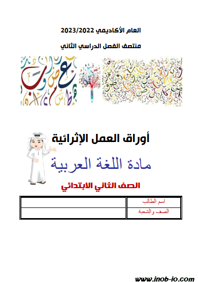 أوراق عمل إثرائية لمادة اللغة العربية الصف الأول لــ منتصف الفصل الثاني
