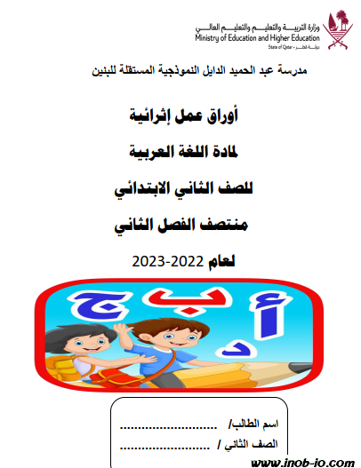 أوراق عمل إثرائـيـة لمادة اللغة العربية الصف الثاني لمنتصف الفصل الثاني