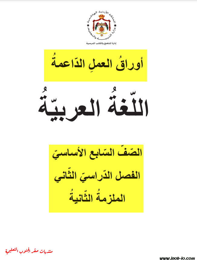 الملزمة الثانية :. أوراق العمل الداعمة لمادة اللغة العربية الصف السابع الفصل الثاني 2022-2023