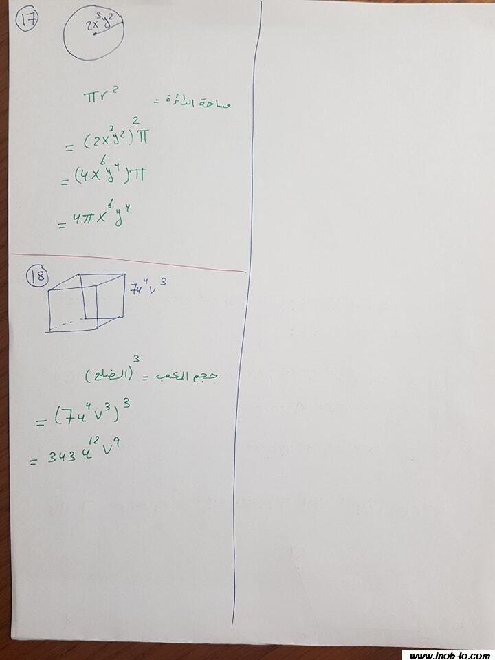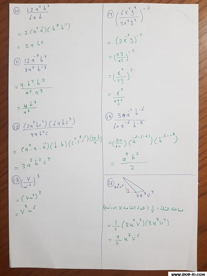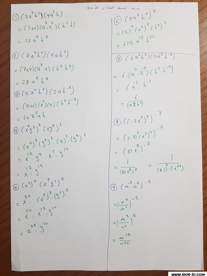 حلول اسئلة تبسيط المقادير الأسية لمادة الرياضيات الصف التاسع الفصل الثاني