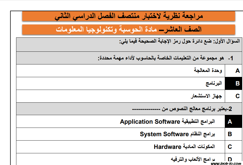 مراجعة نظرية حوسبة لمادة الحوسبة وتكنلوجيا المعلومات المستوى العاشر الفصل الثاني